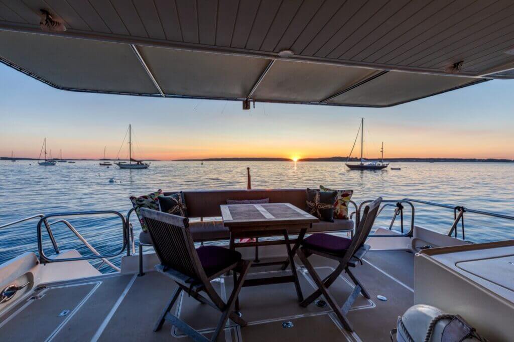 Whether you charter for the day or week, stay for a night at the dock, or cruise for a week; Timeless provides unrivaled amenities packed into its 62 ft length overall. From her vast open salon, covered aft deck, and expansive flybridge to her spacious cabins below, she provides all the space guests could want while exploring the water.